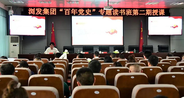 學(xué)習(xí)研討會(huì)結(jié)束后,瀏發(fā)集團(tuán)還開展了“百年黨史”專題讀書班授課。集團(tuán)黨委副書記、總經(jīng)理王輝章作了題為《 學(xué)國(guó)企“家史”謀高質(zhì)量發(fā)展》的主題黨課,為全體黨員講授國(guó)企“家史”,指導(dǎo)大家知史力行,賡續(xù)文化,行穩(wěn)走遠(yuǎn)。