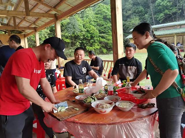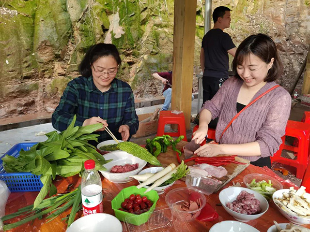 各隊(duì)分工明確,密切配合,洗菜、切菜、配菜、打水、生火、掌勺……各種聲音匯合成美妙的“野炊交響曲”。