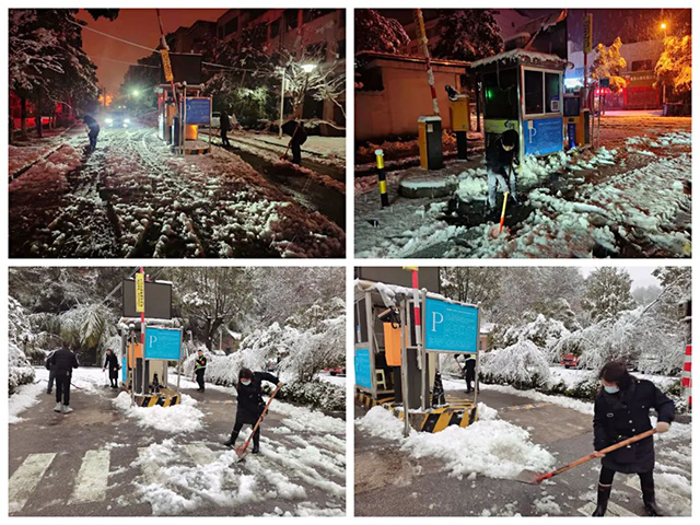 晚上8點,瀏發(fā)集團(tuán)應(yīng)急救援隊聞令出動,緊急迎戰(zhàn),針對勞動路、翠園路、圭齋路等積雪嚴(yán)重路段,以及公共停車場展開除雪防滑保暢通行動。