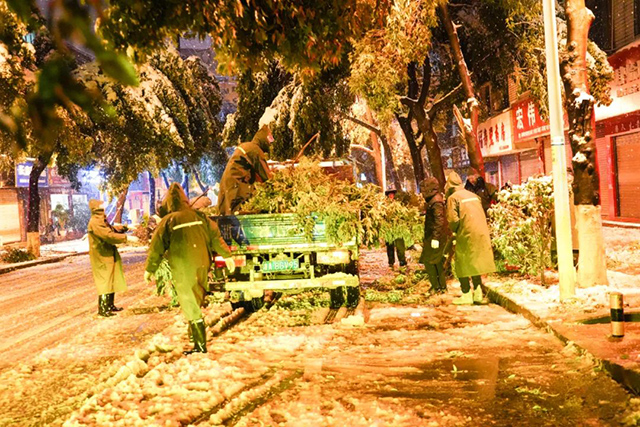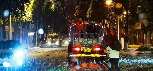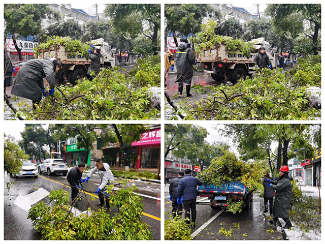 瀏發(fā)集團(tuán)組織5臺鏟車、4臺貨運(yùn)車,20余名應(yīng)急救援隊員迎戰(zhàn)風(fēng)雪,撒鹽、鏟雪、砍斷被折樹枝并及時清理拖運(yùn)……經(jīng)過4個多小時的奮戰(zhàn),才確保了勞動路、翠園路、圭齋路等道路的暢通。