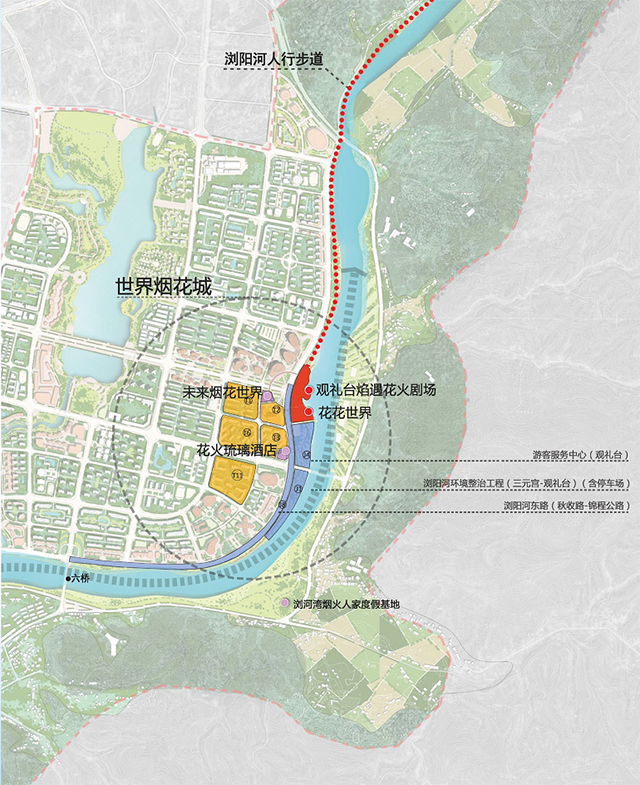 按照規(guī)劃,觀禮臺(tái)片區(qū)將致力打造世界煙花城,充分釋放瀏陽(yáng)世界級(jí)IP“瀏陽(yáng)煙花”熱能,以煙花秀作為核心吸引,以煙花科技互動(dòng)體驗(yàn),煙花燃放網(wǎng)紅地標(biāo)打卡為支撐,植入“一秀(焰遇花火劇場(chǎng)秀)、一館(未來(lái)煙花世界——煙花主題智慧體驗(yàn)館)、一園(花花世界——煙花主題城市花海樂(lè)園)”撬動(dòng)觀禮臺(tái)片區(qū)文旅發(fā)展。