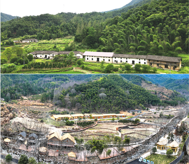 通過引進(jìn)、建設(shè)高端民宿項(xiàng)目,使這個原本偏遠(yuǎn)、人煙稀少的山中村落(上圖),成為一個全新的民宿村落(下圖)。
