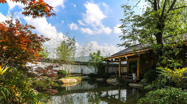 “云上的小院”民宿就是由“云上的小店”綜藝節(jié)目錄制使用的民房改造而成,節(jié)目組成員汪涵、沈夢(mèng)辰、楊迪居住的房子改造成了民宿客房,節(jié)目組的設(shè)備房、機(jī)房則改造成了民宿配套的茶室、文娛室等,同時(shí)利用房子周邊的山林空地,打造了一處中式庭院。