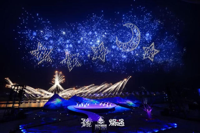 此次活動最引人注目的創(chuàng)新,在于突破傳統(tǒng)煙花表演的時間邊界——不同于天空劇院常規(guī)夜間燃放模式,本次特別將燃放時長延伸至?xí)円闺p時段:藍調(diào)時刻,創(chuàng)意彩煙以莫奈風(fēng)色彩勾勒天空畫卷,打破“煙花只屬夜晚”的固有認知;夜幕降臨時,全新“天幕焰火”以天空為陣地高難度環(huán)繞綻放,配合燈光與沉浸式音效,讓瀏陽河從晝到夜化作絕美舞臺。這種晝夜聯(lián)動的呈現(xiàn)方式,正是“焰遇”IP對傳統(tǒng)花炮文化的創(chuàng)新性表達。