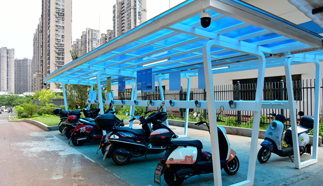 財(cái)富新世界小區(qū)有700余戶居民,毗鄰?fù)ǔ躺虡I(yè)廣場(chǎng),日常約有300多輛摩托車,“充電難”問(wèn)題長(zhǎng)期困擾居民。瀏發(fā)集團(tuán)在項(xiàng)目中利用小區(qū)閑置空地新建4套充電棚,提供40多個(gè)充電端口。