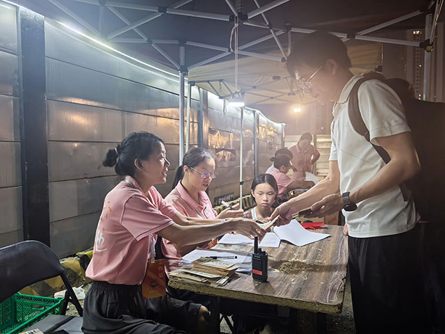 焰火秀當(dāng)天13時(shí),湘贛邊城市候機(jī)廳與瀏發(fā)教育50余名工作人員便在天空營(yíng)地開始忙碌,他們搬運(yùn)桌椅、布置場(chǎng)地、調(diào)試設(shè)備、引導(dǎo)游客。焰火結(jié)束后,他們的工作仍在繼續(xù)——整理物資、清理場(chǎng)地,一直工作到凌晨?!皣?guó)慶期間兩場(chǎng)焰火,我們累計(jì)服務(wù)天空營(yíng)地游客2300人,焰火直通車游客近6000人?!毕孚M邊城市候機(jī)廳經(jīng)理胡靜介紹。