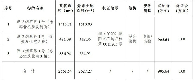 受瀏陽市淳口鎮(zhèn)人民政府委托,根據(jù)國有資產(chǎn)管理的相關(guān)規(guī)定,我公司定于2021年1月19日上午10:00在瀏陽市城鄉(xiāng)發(fā)展集團有限責任公司8樓會議室(人民東路60號),對委托人所屬的位于瀏陽市淳口鎮(zhèn)煙草路1號的3宗房地產(chǎn)權(quán)向社會進行整體公開拍賣。標的基本情況如下: