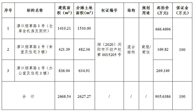 受瀏陽市淳口鎮(zhèn)人民政府委托,根據(jù)國有資產(chǎn)管理的相關(guān)規(guī)定,我公司定于2021年1月28日上午10:00在瀏陽市城鄉(xiāng)發(fā)展集團有限責(zé)任公司8樓會議室(人民東路60號),對委托人所屬的位于瀏陽市淳口鎮(zhèn)煙草路1號的3宗房地產(chǎn)權(quán)向社會進行公開拍賣(視情整體或分標(biāo)拍賣)。