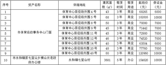 受瀏陽(yáng)市體育運(yùn)動(dòng)事務(wù)中心和瀏陽(yáng)市永和鎮(zhèn)人民政府等單位委托,根據(jù)國(guó)有資產(chǎn)管理的相關(guān)規(guī)定,我公司定于2021年3月10日上午10:00在瀏陽(yáng)市城鄉(xiāng)發(fā)展集團(tuán)有限責(zé)任公司8樓會(huì)議室,對(duì)位于瀏陽(yáng)市體育中心田徑場(chǎng)外圍和永和鎮(zhèn)七寶山村等資產(chǎn)面向社會(huì)進(jìn)行公開(kāi)拍租。標(biāo)的情況見(jiàn)下表: