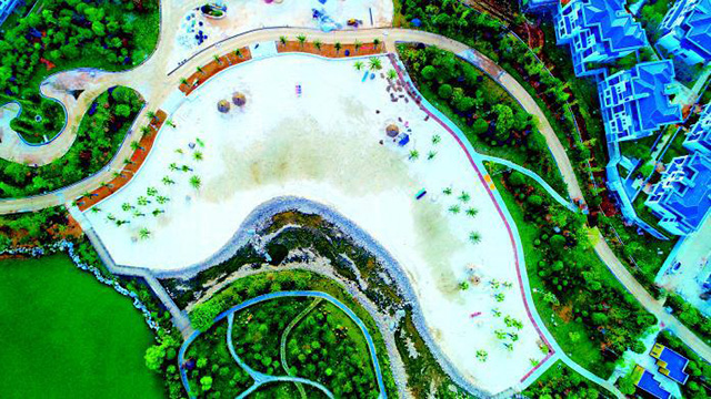 為此,承建方專門從海南三亞采集了1萬噸純天然海沙,整整裝滿了300多輛卡車,跋涉了1500多公里運(yùn)到長(zhǎng)興湖。整個(gè)沙灘面積占了東湖風(fēng)光帶的十分之一。