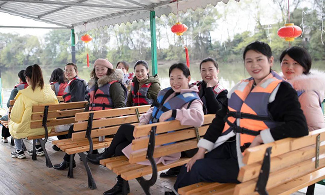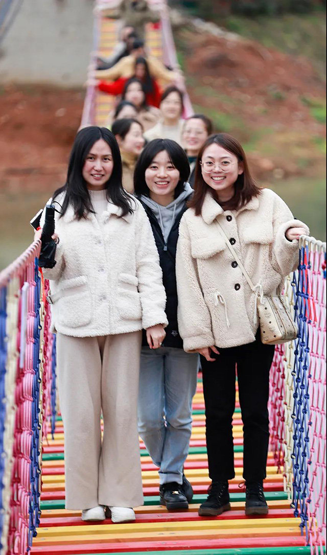 在瀏陽河第一灣景區(qū),女同胞們乘船游湖,漫步玻璃橋,在輕松愉快的氛圍中拍下美照,盡享春光之美。