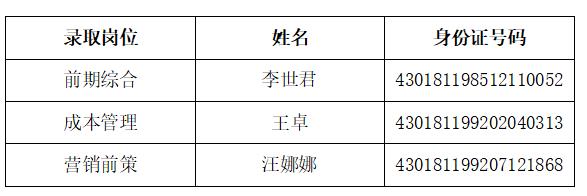 湖南省瀏陽市恒遠建設(shè)開發(fā)有限公司2022年公開招聘合同制工作人員資格審查、筆試、面試、體檢、綜合考察工作均已經(jīng)結(jié)束,現(xiàn)將擬錄用人員名單公示如下: