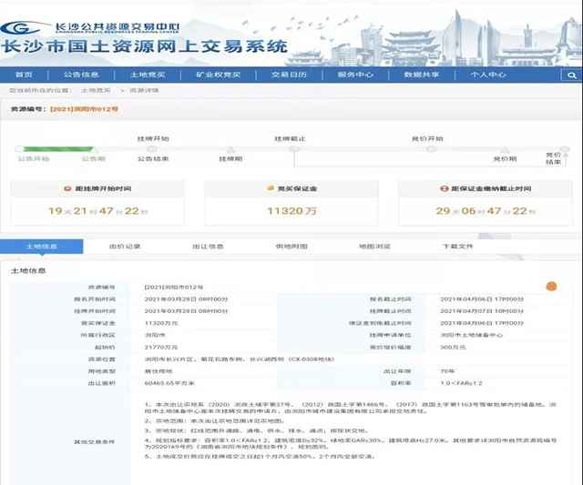 有意競買者可登錄長沙市國土資源交易網(wǎng)上交易系統(tǒng)(http://gtjy.csggzy.cn/trade-engine/trade/index)進(jìn)行查詢。掛牌開始時間為2021年3月28日08時00分,截止時間為2021年04月07日10時00分,申請人可在網(wǎng)上瀏覽或下載本次掛牌出讓文件,并按文件規(guī)定的操作程序參加競買。