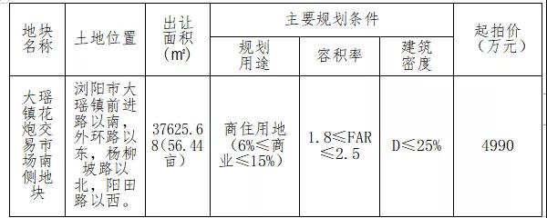 (瀏陽(yáng)大瑤鎮(zhèn),56.44畝,起拍價(jià)4990萬(wàn)元)