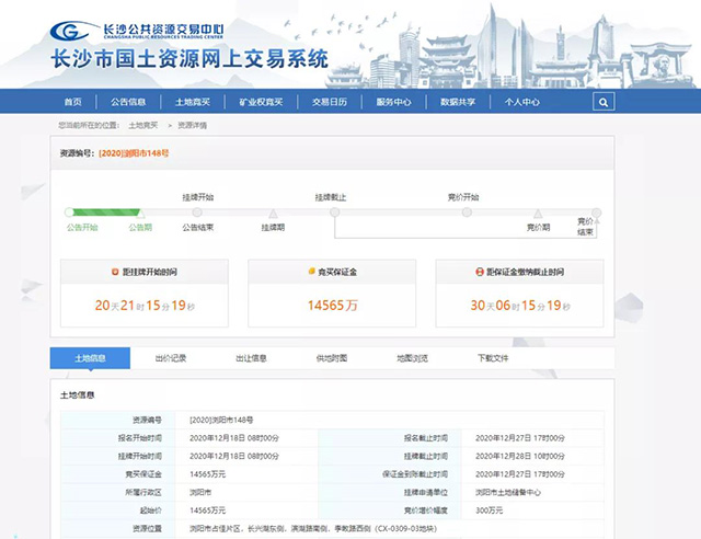 有意競(jìng)買者可登錄長(zhǎng)沙市國(guó)土資源交易網(wǎng)上交易系統(tǒng)(http://gtjy.csggzy.cn/trade-engine/trade/index)進(jìn)行查詢。報(bào)名開始時(shí)間為2020年12月18日08時(shí)00分,截止時(shí)間為2020年12月27日17時(shí)00分,申請(qǐng)人可在網(wǎng)上瀏覽或下載本次掛牌出讓文件,并按文件規(guī)定的操作程序參加競(jìng)買。
