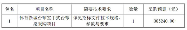 一、采購項目名稱:體育新城臺球室中式臺球桌采購項目