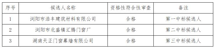 瀏陽市五環(huán)建設(shè)開發(fā)有限公司對(duì)瀏陽市棖沖鎮(zhèn)青草完小教學(xué)綜合樓建設(shè)項(xiàng)目門窗進(jìn)行公開采購,現(xiàn)將采購結(jié)果公告如下: