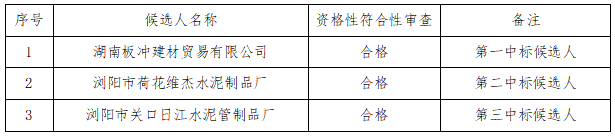瀏陽市五環(huán)建設(shè)開發(fā)有限公司對砼管及預制井進行公開采購,現(xiàn)將采購結(jié)果公告如下: