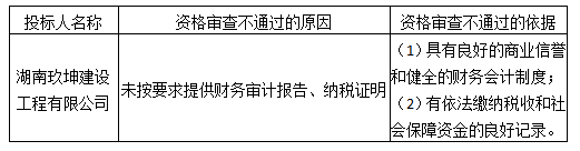 七、資格審查不通過的投標供應商名稱、原因和依據(jù)