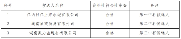 瀏陽市五環(huán)建設(shè)開發(fā)有限公司對水泥材料進(jìn)行公開采購,現(xiàn)將采購結(jié)果公告如下: