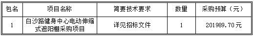 一、采購項目名稱:白沙路健身中心電動伸縮式遮陽棚采購項目