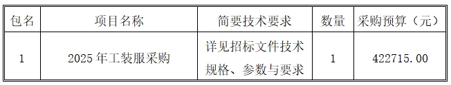 一、采購(gòu)項(xiàng)目名稱:2025年工裝服采購(gòu)