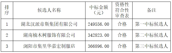 受 湖南株樹橋城市運營服務(wù)有限責(zé)任公司 的委托,本代理機構(gòu)對 2025年工裝服采購(第二次) 進行公開招標(biāo)采購,現(xiàn)將采購結(jié)果公告如下: