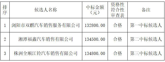 受 湖南株樹(shù)橋城市運(yùn)營(yíng)服務(wù)有限責(zé)任公司 的委托,本代理機(jī)構(gòu)對(duì) 皮卡車(chē)采購(gòu)(第二次) 進(jìn)行公開(kāi)招標(biāo)采購(gòu),現(xiàn)將采購(gòu)結(jié)果公告如下: