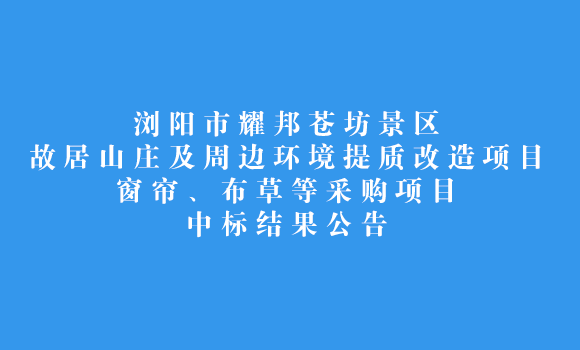 受瀏陽市文化旅游產(chǎn)業(yè)發(fā)展有限責(zé)任公司的委托,湖南淳晟項目管理有限公司對瀏陽市耀邦蒼坊景區(qū)故居山莊及周邊環(huán)境提質(zhì)改造項目窗簾、布草等采購項目進(jìn)行公開招標(biāo)采購,現(xiàn)將采購結(jié)果公告如下:
